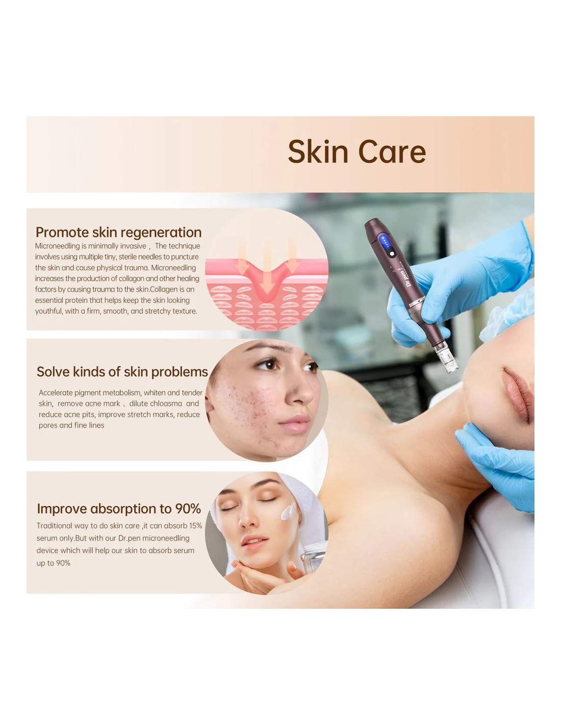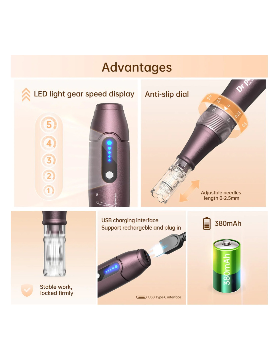 Dr. Pen is a microneedling brand built around two tightly linked product pillars: the automated microneedling pen and its interchangeable needle cartridges. Together, they form a modular system intended to make microneedling more precise, customizable, and repeatable—whether used in professional-inspired routines or by experienced at-home users who want device control rather than manual tools.