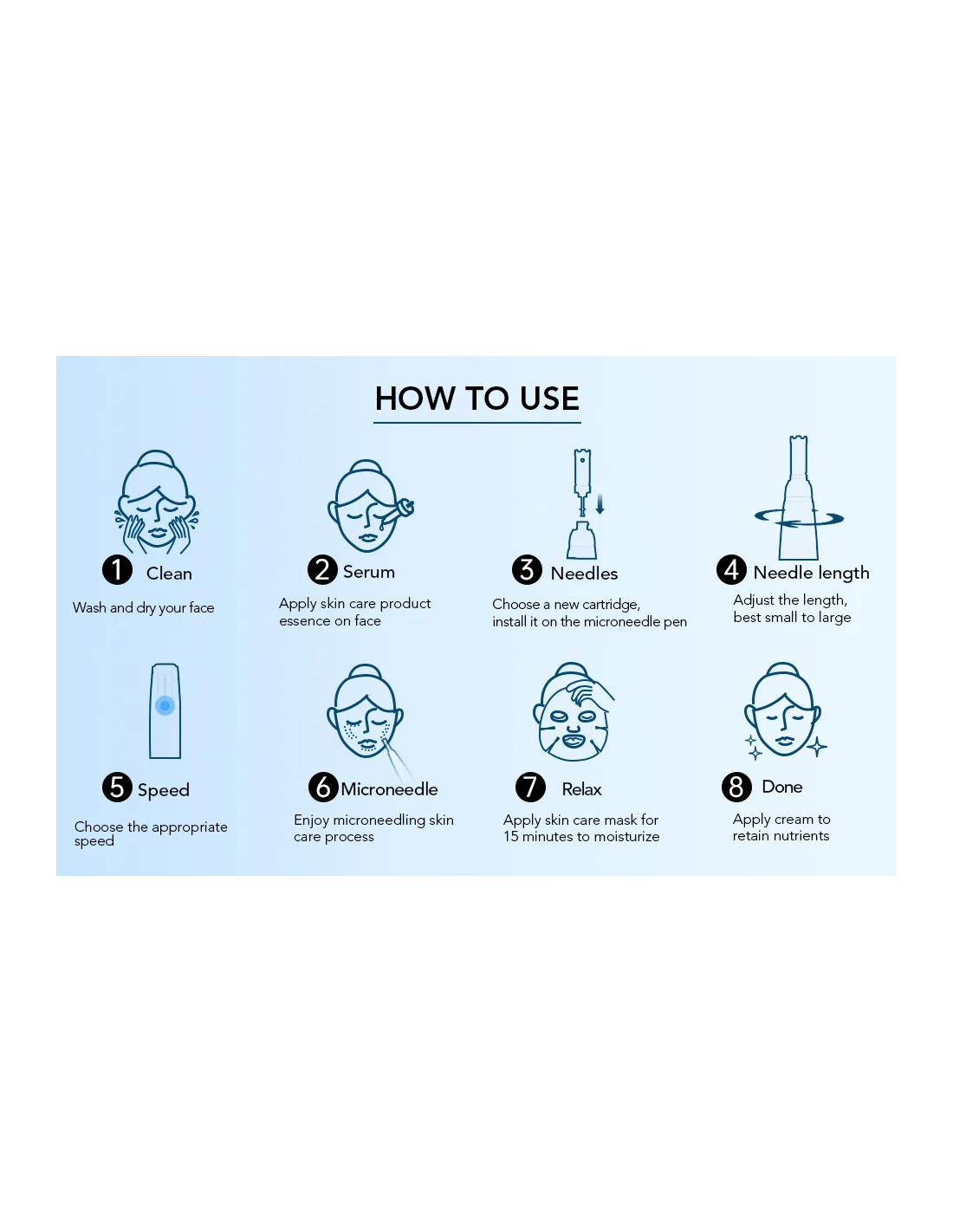 This device has a wide range of applications, ergonomic design, powerful motor, six speeds with smooth adjustment, puncture depth up to 2.5 mm. Effective for correcting problems on any part of the body. When using it, you can achieve maximum profitability of the procedures due to their quick and high-quality performance, and inexpensive components. It is used to remove deep wrinkles, restore the collagen framework, treat scars, scars, post-acne, stretch marks, cellulite, hyperpigmentation. Also used for baldness, and for median peeling. With its help, you can effectively deal with such problems as sagging skin, acne, large pores, excess fat deposits, "double" chin. 6 speed levels LED light gear speed display with incremental speed control mode. New design Valve needle cartridge, build-in safety isolation zone to ensure the sealing performance, more hygiene and safe. New appearance, minimalist and modern. Double colored plastic handle, wear resistant with comfortable grab feeling. Wireless model. Ultra-long working time, big capacity battery to ensure the pen working efficiently. New cartridge 18 needles, diameter 0.18mm. Less pain and better efficacy. Nice white travel box, convenient storage and portability. Each accessory can be hold with exclusive space. Minimalist and practical. 1-6 speed levels can meet different needs of treatment. 3 bayonets lock design for needle cartridge, working efficient and stable. Battery capacity: 700 mAh ( wireless model ) Speed: 6 levels Adjustable needle length: 0.2 mm - 2.5 mm Dimensions: 17*13*6 cm/ 420 g