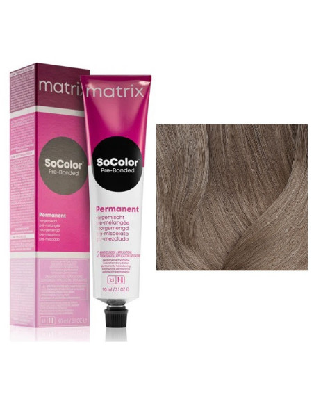 Transform your hair from the very beginning without fear of damaging it. Matrix's permanent hair color SoColor Pre-Bonded Blended allows you to express your creativity without any obstacles. Because this color combines a color base with a caring protective concentrate that takes care of optimal hair health. In short, Matrix's SoColor color is a simple and effective solution for any type and any shade of hair. In addition to the perfect color result, you will also get stronger, shinier and healthier hair with 1 use. Create your own original and unique look today. Characteristics: provides the perfect shade, provides 100% coverage of all gray hair, prevents hair breakage and damage, strengthens hair and gives it shine, maintains optimal hair condition, protects hair fibers, suitable for all hair types and shades. Ingredients: Pre-Blended formula - for a natural tone-on-tone color result, Pre-Paired formula - ensures an effective combination with other Matrix products, Bond-Protecting concentrate - protects and strengthens the internal structure of the hair, reduces breakage Vegan-friendly formula, Usage: Mix the color with Matrix Cream Developer (10, 20, 30 or 40 vol.) in a 1:1 ratio, apply the mixture to the entire length of the hair and leave it for 35-45 minutes. Then rinse the hair thoroughly with water and wash with shampoo.