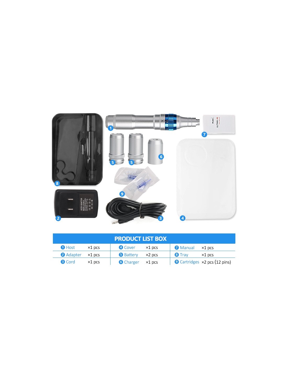 Dr. Pen Ultima A6 dermapens ir profesionāla bezvadu mikroadatu terapijas ierīce ar 5 ātruma līmeņiem, regulējamu adatu dziļumu līdz 2,5 mm un diviem maināmiem akumulatoriem. Tā piemērota procedūrām, kas palīdz uzlabot smalko līniju, grumbu, rētu, striju, poru, ādas tvirtuma zuduma un hiperpigmentācijas izskatu. Ergonomiska, ekonomiska un piemērota profesionālai lietošanai ar steriliem vienreizlietojamiem kārtridžiem.