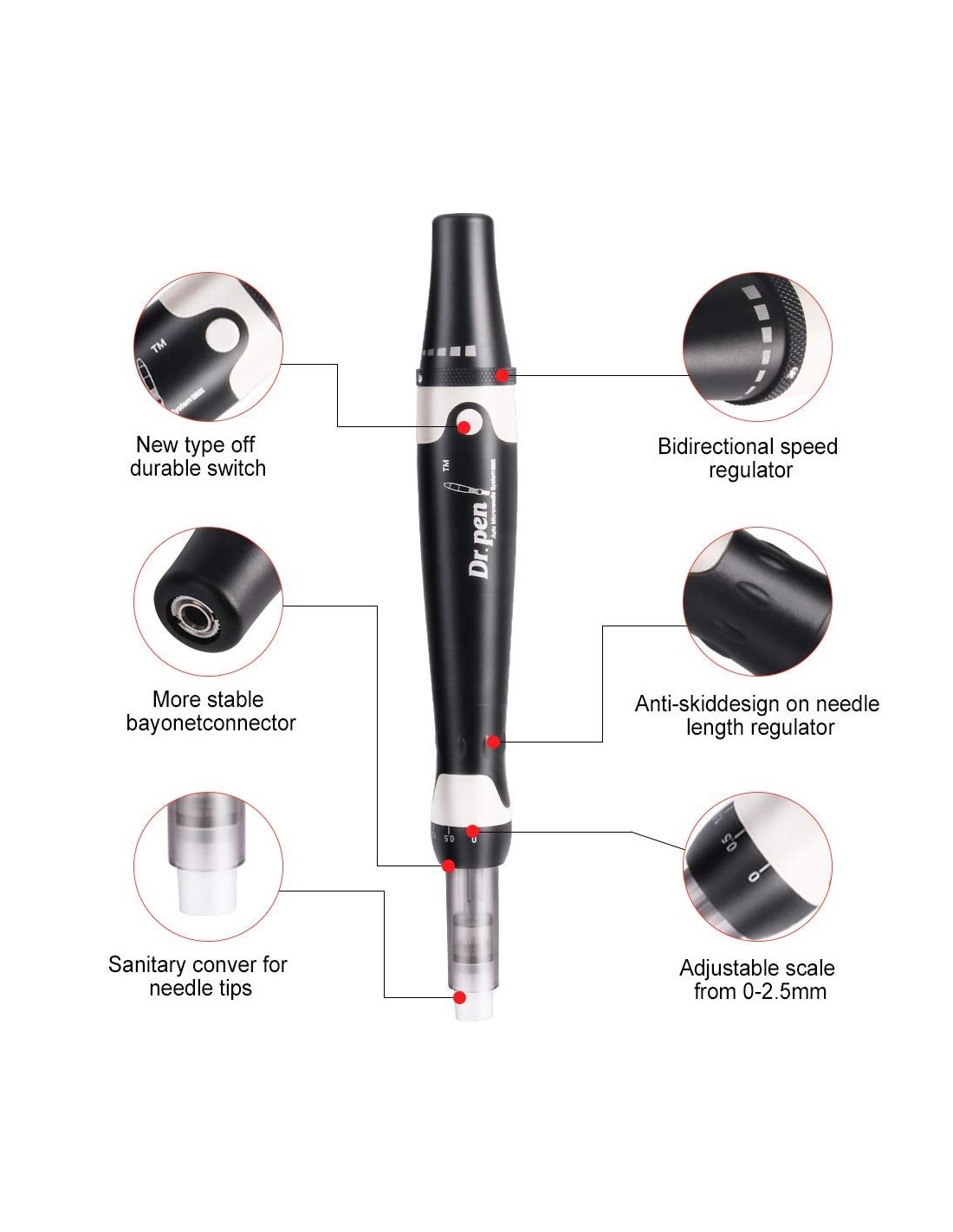 Viena no zīmola galvenajām priekšrocībām ir regulējamība. Daudzi Dr. Pen modeļi izceļ regulējamu adatu dziļumu, lai lietotājs varētu pielāgot iedarbību atkarībā no ādas biezuma un apstrādes zonas. Tas ir svarīgi, jo sejā ir jūtīgākas zonas, bet ķermenim var būt nepieciešami citi iestatījumi. Dr. Pen arī popularizē vairākus ātruma līmeņus, kas ļauj sabalansēt komfortu ar efektivitāti un uzturēt vienmērīgu tehniku.